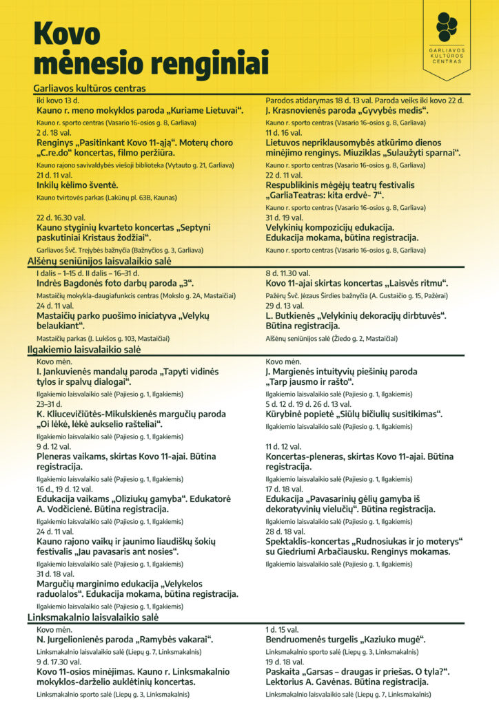 Detalesnę informaciją apie renginius rasite Facebook paskyrose: