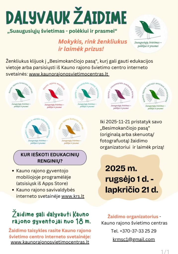 Dalyvaukite žaidime „Suaugusiųjų švietimas – polėkiui ir prasmei“