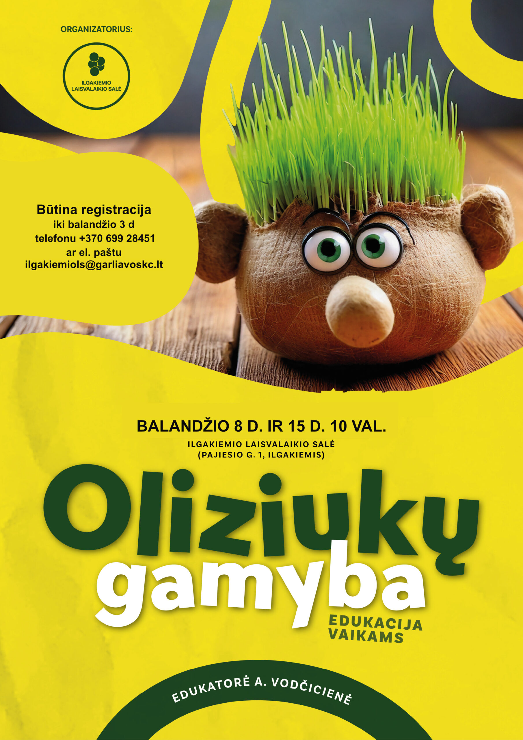 Vietų skaičius ribotas, būtina registracija iki balandžio 3 d. telefonu +370 699 28451 ar el. paštu ilgakiemiols@garliavoskc.lt