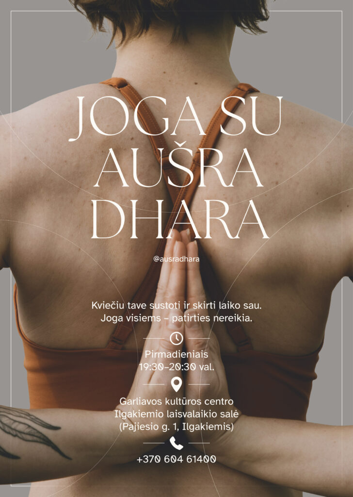 Ar jauti, kad norisi lėčiau? Mažiau triukšmo, daugiau kvėpavimo ir buvimo savyje. Joga su Aušra Dhara – tai laikas sau, be spaudimo, be lūkesčių, be būtinybės „mokėti“ jogą.
