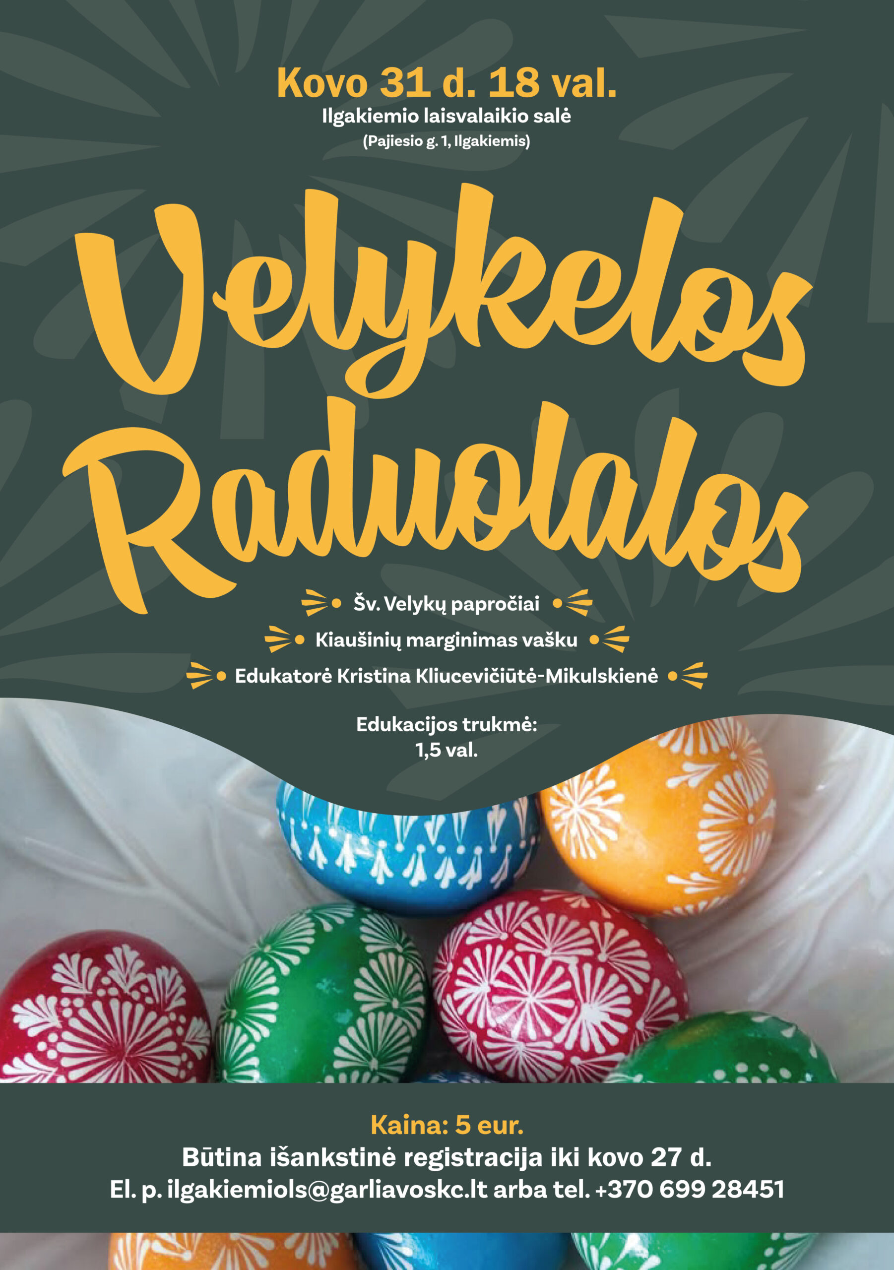 Būtina išankstinė registracija iki kovo 27 d. el. paštu ilgakiemiols@garliavoskc.lt ar telefonu +370 699 28451