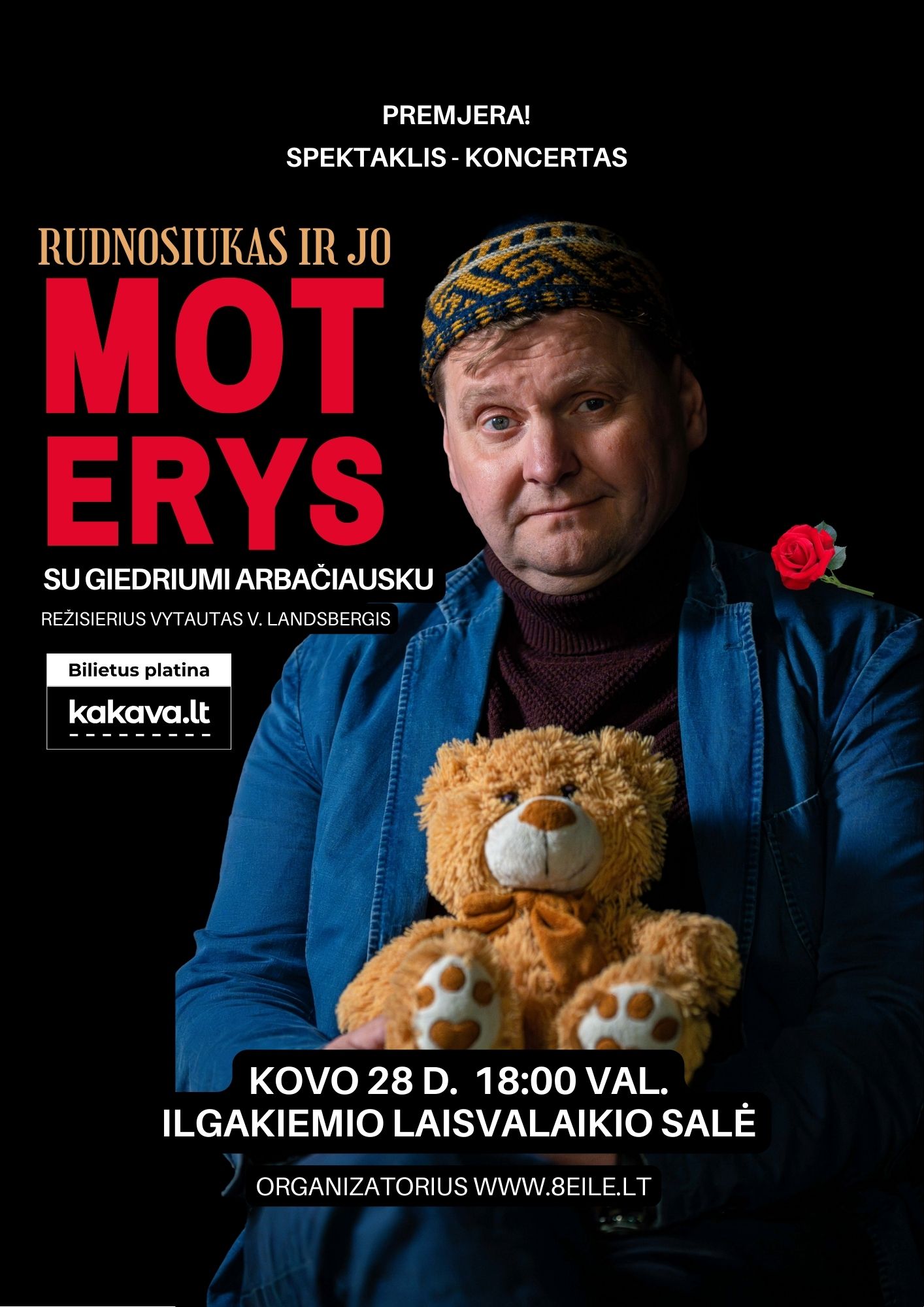 Rudnosiukas keliauja po miestus ir dalijasi savo meilės paieškomis – tik suaugusiems skirtame premjeriniame spektaklyje–koncerte „Rudnosiukas ir jo moterys“. Tai istorijomis ir dainomis perpinta Rudnosiuko gyvenimo kelionė – su pakilimais ir nuopuoliais, ieškant tos vienintelės Rudnosiukės. Ar jam pavyko ją atrasti? Labai norisi tikėti, kad taip…
